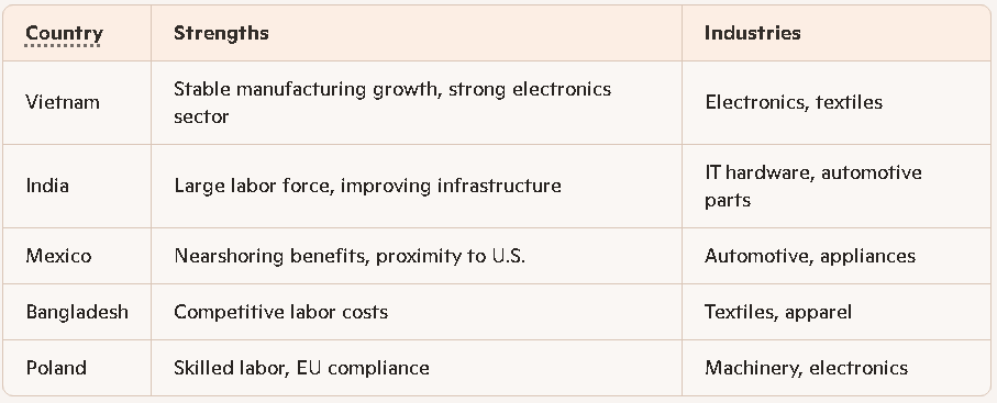 📘 Table: Emerging Low‑Cost Sourcing Hubs in 2026