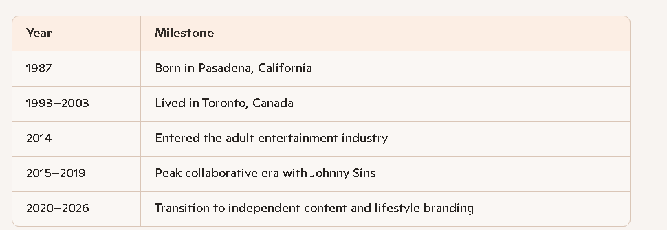 Kissa Sins, born June 22, 1987, in Pasadena, California, is an American adult film actress, model, writer, and digital creator who rose to prominence through her on‑screen performances and her long‑publicized relationship with fellow performer Johnny Sins. Over the years, she has built a strong fanbase not only for her work but also for her candid personality, entrepreneurial ventures, and active presence across social platforms. Her career has evolved significantly since her debut, and by 2026 she remains one of the most recognizable names associated with the industry.