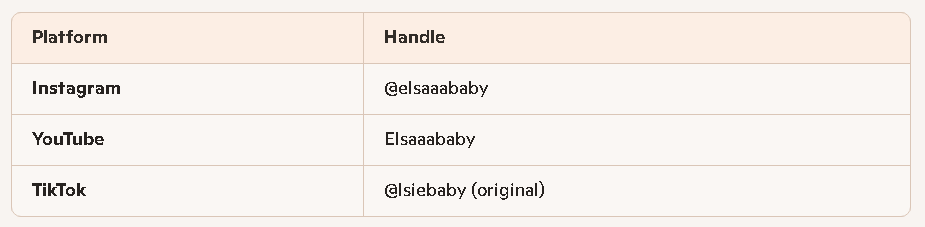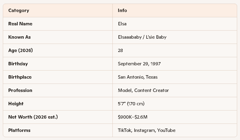 Elsaaababy’s real name is Elsa, as confirmed by multiple public biography sources. She is also known by her creator name L’sie Baby, which became her signature identity across social media platforms.