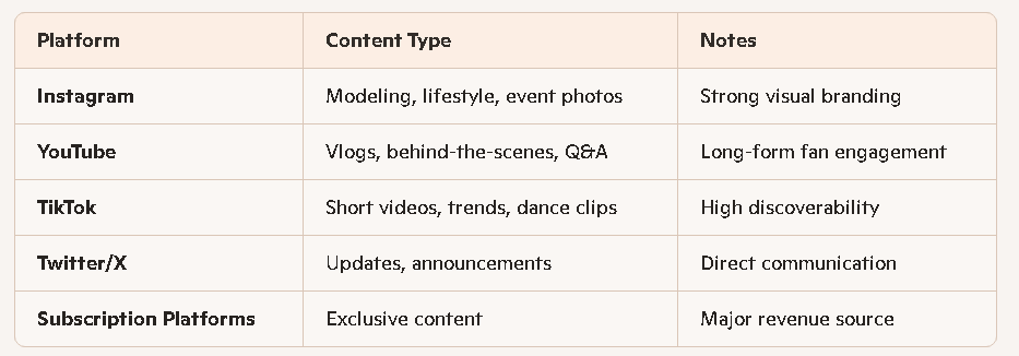 Her biography reflects a creator who built her career independently, leveraging social media trends, consistent posting, and direct fan interaction to grow her brand.