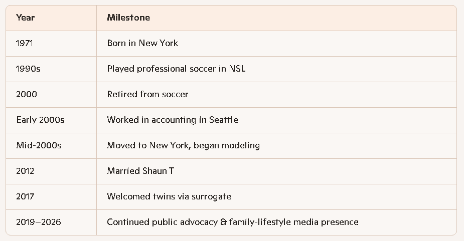 After retiring from soccer, Scott returned to Seattle and worked in his family’s corporate development business as an accountant. Later, he moved to New York, where he was discovered by a modeling scout. His modeling career eventually led him to meet Shaun T, marking the beginning of a new chapter in both his personal and professional life.